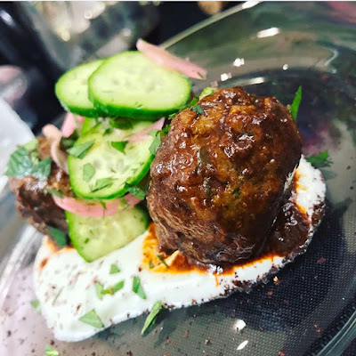 Lamb, yogurt and harissa oh my! I'll save you a Google search and tell you that harissa is a hot chili paste, you're welcome. These meatballs were everything! Drenched in harrisa which had a little kick, but no worries, Chef Melissa plated these babies on yogurt to cool it down. They were so full of favor and paired with the crunchy freshness of the cucumber & herbage, just scrumptious!